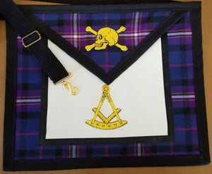 Widow's Son Apron with Freemason's Universal Tartan Vinyl Backed - Skull & Cross bones only available in Black & yellow thread colors.  - Regular price